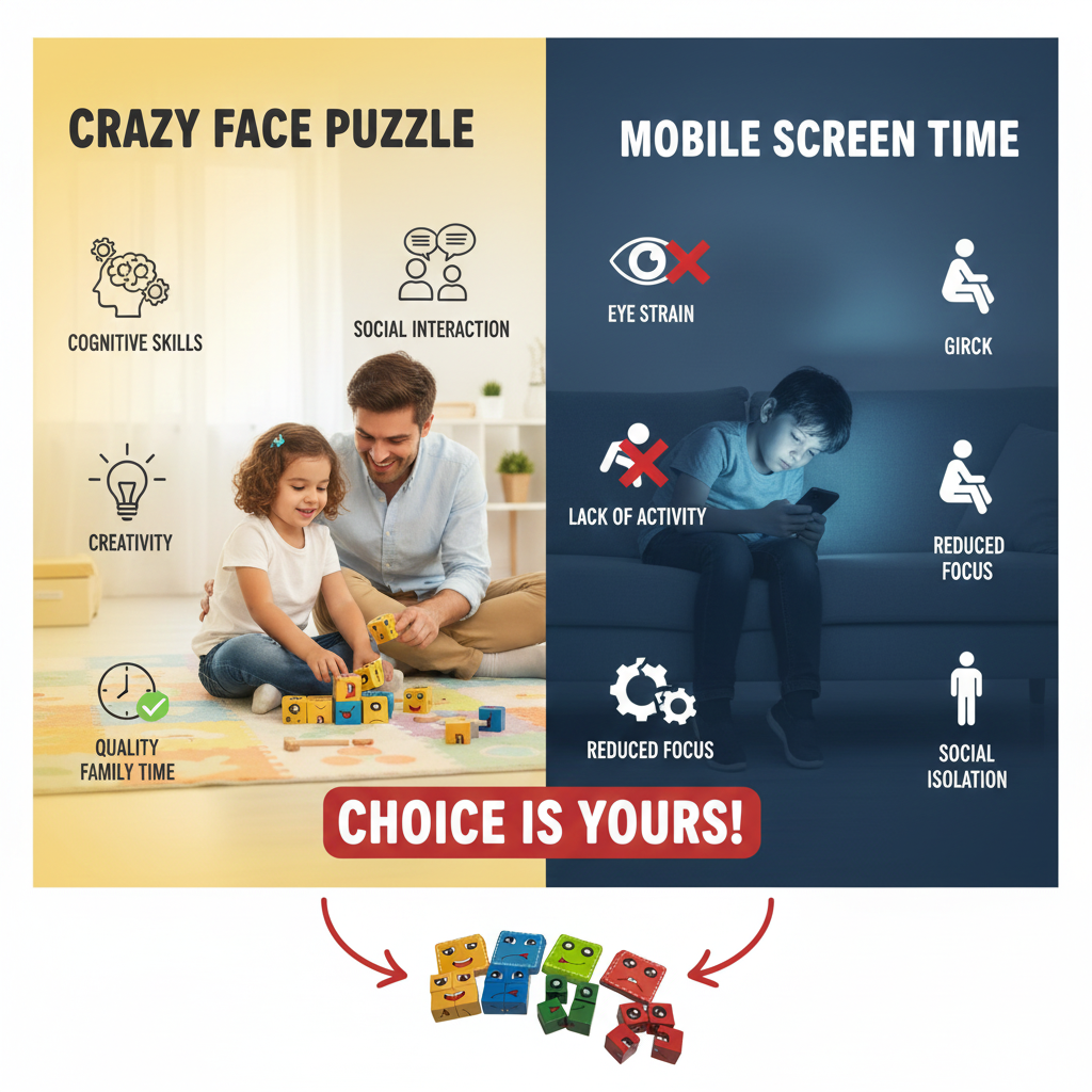 Give your child a fun and educational playtime with this Emoji Face Cube Puzzle Game — a creative, crazy face puzzle game that helps kids learn expressions, boost problem-solving skills, and stay away from screens. With colorful blocks and fun emoji challenge cards, children can recreate faces, explore emotions, and enjoy hours of entertainment. Made from safe, durable wood, this face puzzle cube is perfect for kids aged 3+ and ideal for parent-child bonding. A must-have developmental toy that blends fun, learning, and creativity!